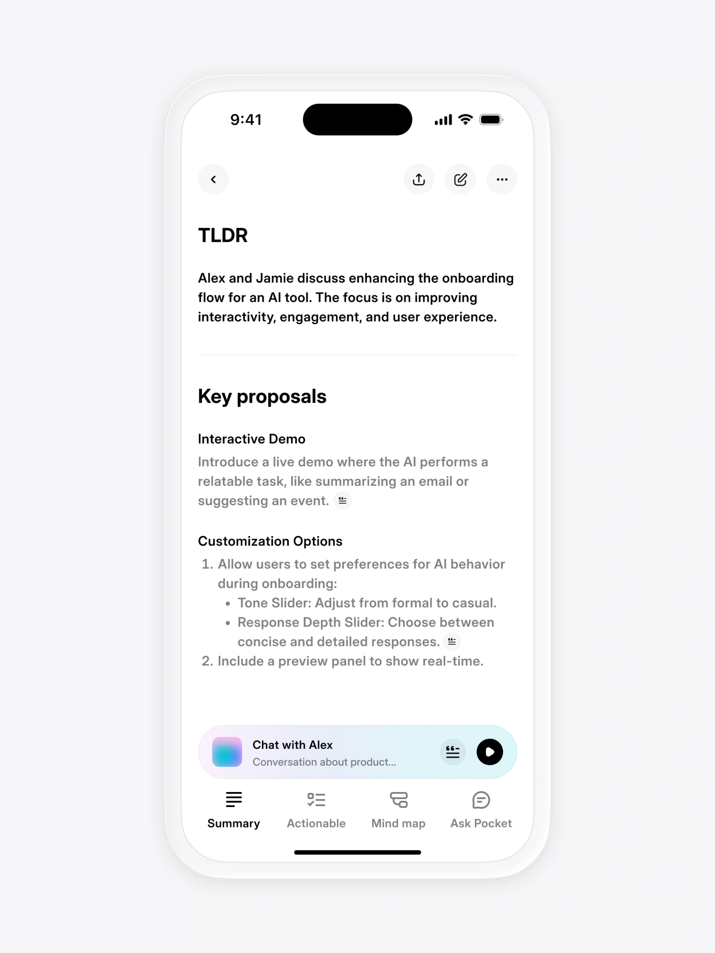 I wanted the app to feel effortless and a little fun. So I stripped away the unnecessary, kept flows clean, and made sure core interactions like recording, playback, and summaries felt smooth. Added playful touches where they matter most.
